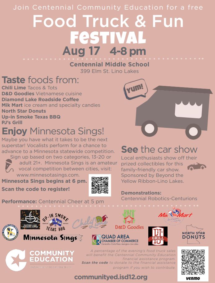 Save the date for Lino Lakes' annual Blue Heron Days festival! Details and times are being confirmed. Stay tuned for more information.